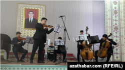 А блистательная " Камерата Ашхабад" исполнила "Гармонию" Джан Пьера Ревербери ("Рондо Венициано") с соло на гобое Дидара Йомудова и танго из мюзикла "Мулен Руж" Крейга Армстронга( соло на скрипке-Бахрам Доллыев).