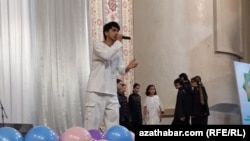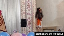 А первоклассник шестой школы Салих Дарчия с выразительным удовольствием рассказал русскую народную сказку "Репка" под аккомпанемент дутара Мурада Аширова.