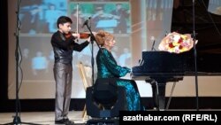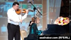 А самым взрослым-преподаватель кафедры струнных инструментов ТГМУ имени Данатара Овезова Сейран Касими. Он исполнил "Скерцо"