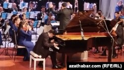 После завершения фортепьянного концерта Расул Клычев и оркестр вместе со зрителями аплодировали замечательному пианисту, который после такого огромного физического и эмоционального напряжения дополнительно исполнил "Интермеццо" Брамса.