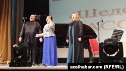 Завершило концерт трио вокалистов песней Нуры Мухатова "Gel Türkmenistаna".