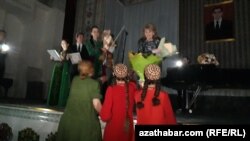 Но главным музыкальным потрясением вечера стал премьерный "Романс" Джерен Курбанклычевой, официально первой туркменской женщины -композитора, который она посвятила Айболек, преподнеся цветы после исполнения.