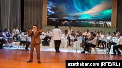 А при исполнении песни знаменитого турецкого певца, "императора турецкой музыки" Ибрагима Татлысеса (Татлы) "Turkmen Gelini" cолировал Гурбанмурат Заманов под видеоряд картин туркменских художников.